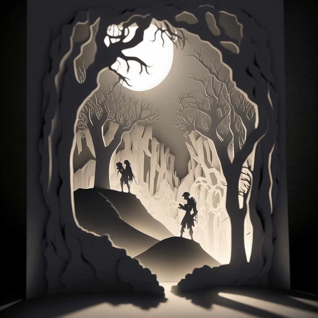 Right now I am planning making a new video entirely out of paper cut images like the one below. This is also created with the help of Midjourney.